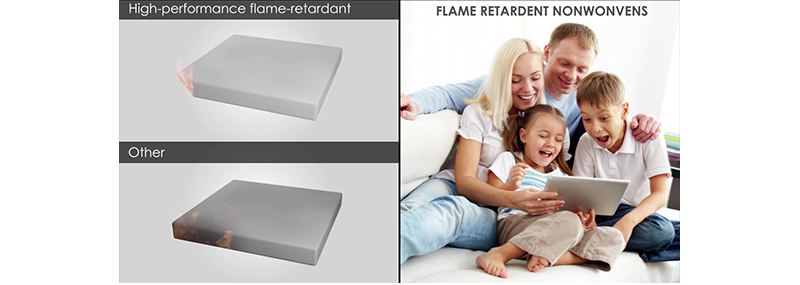 丙綸阻燃無紡布: 用丙烯為原料制得的合成纖維,特點:強度高,濕強度和幹強度好,耐磨損,耐腐蝕,測試標準有美國FMVSS 302 。